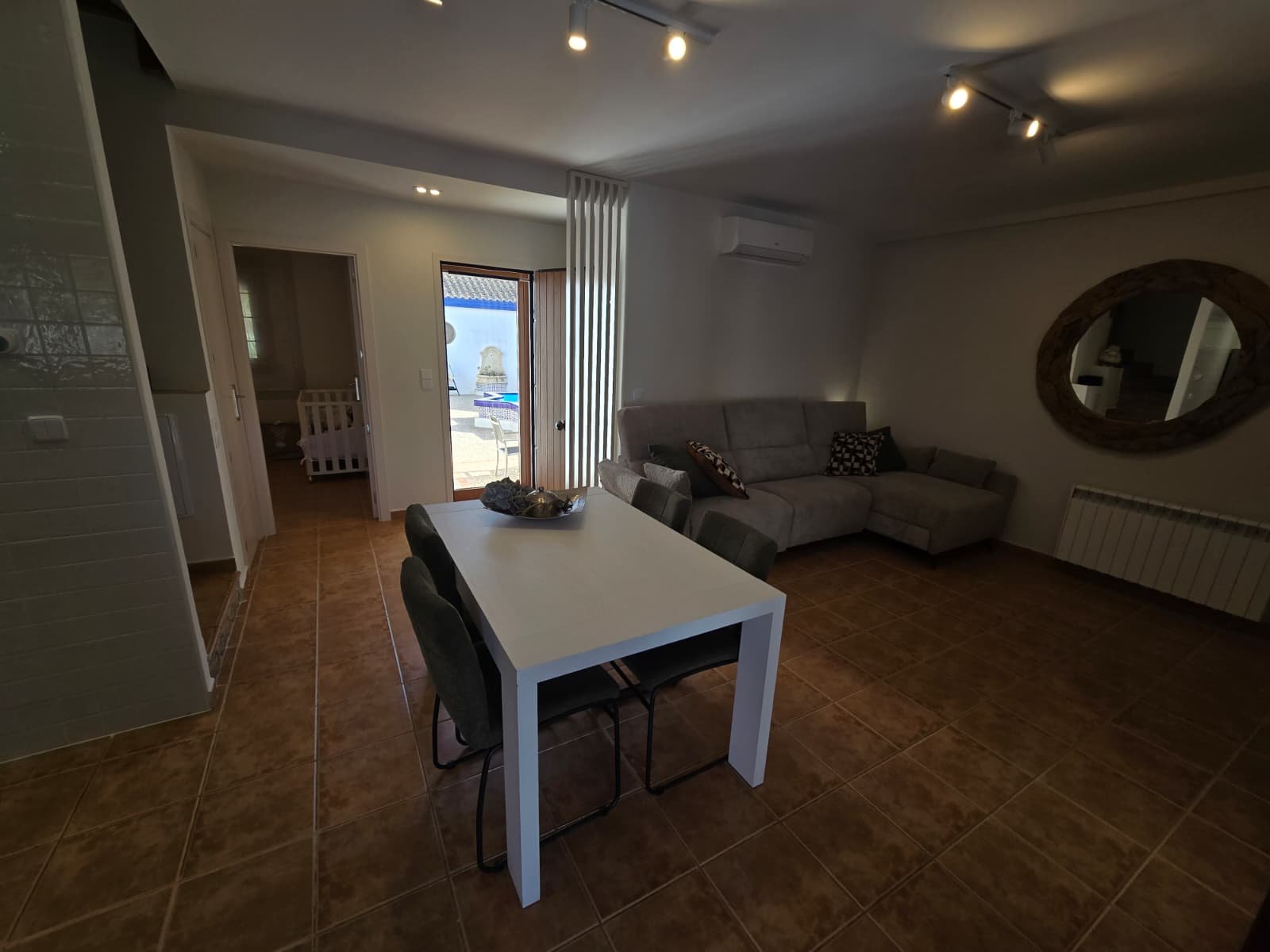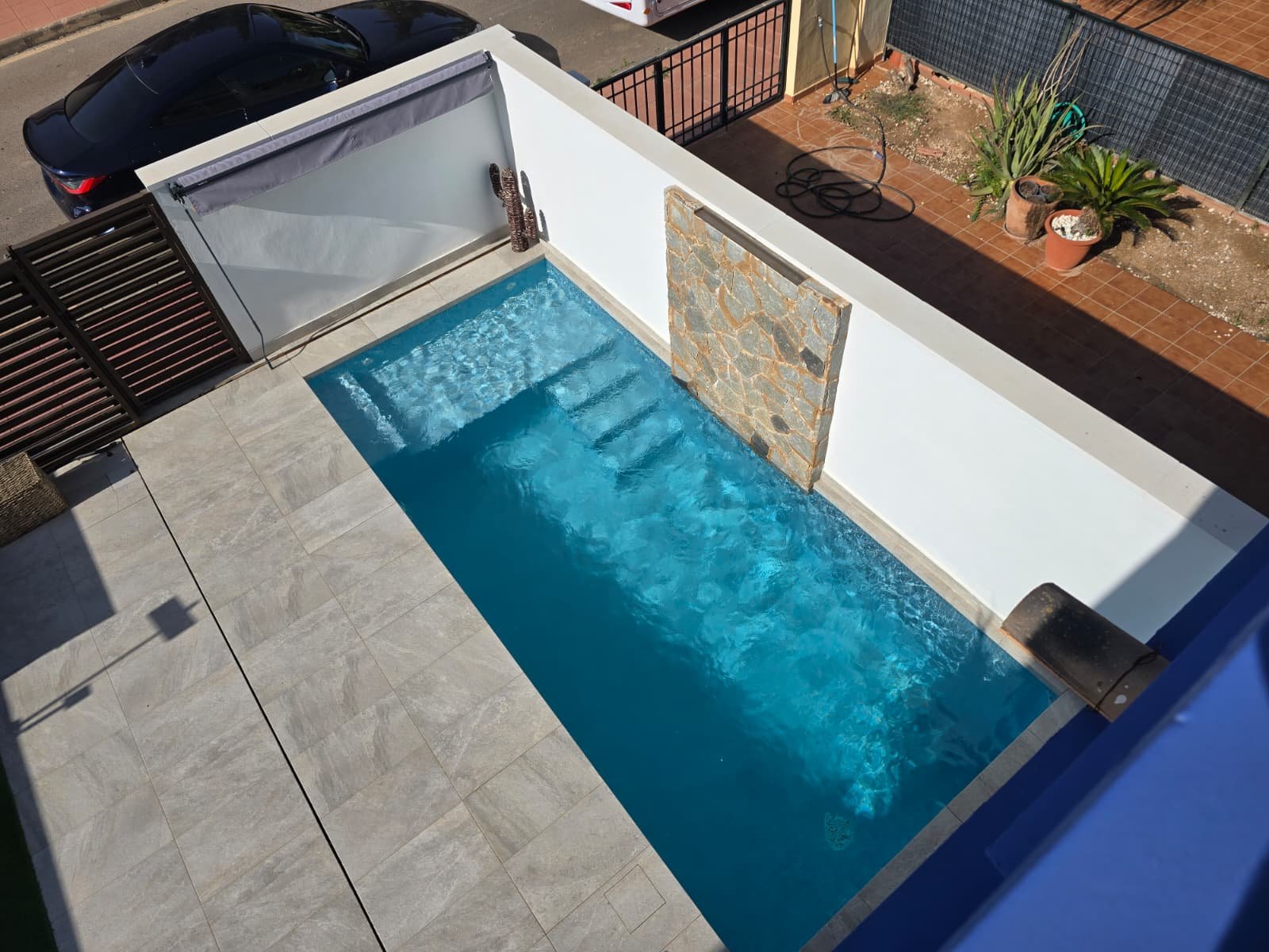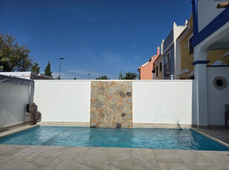 Casa unifamiliar con 4 dormitorios, 2 baños, piscina privada propia, solárium y jardín reformado. Ampliada respecto al modelo original, con mayor superficie y funcionalidad.